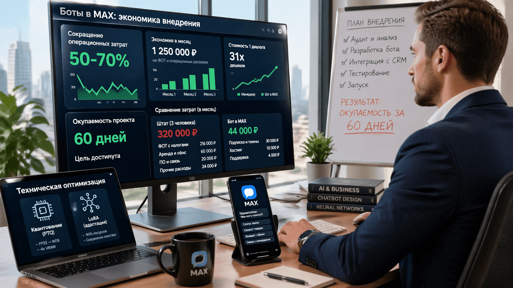 На практике боты в Макс выходят в ноль уже к середине третьего месяца эксплуатации, после чего начинают генерировать чистую прибыль, эквивалентную стоимости содержания целого отдела.