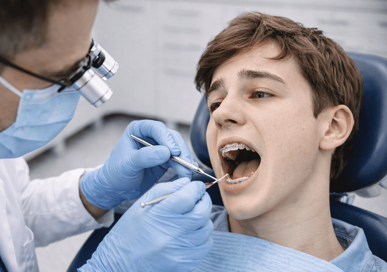 Стоматолог-ортодонт подбирает и устанавливает брекет-систему для исправления аномалии прикуса. Он выполняет тщательное обследование и планирует лечение на основе анализа рентгеновских снимков и слепков челюсти. В процессе лечения пациент регулярно посещает врача для корректировки брекетов.