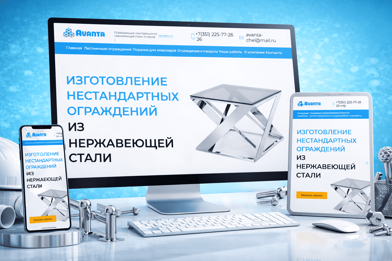 Холодный блеск металла и прозрачность стекла складываются в образ точной инженерной эстетики сайта AVANTA. Белое поле, синий акцент и лаконичная графика создают ощущение расчета и аккуратности. П заданной модели создаются лучшие сайты для строительных компаний, работающих с ограждающими системами и сложными конструкциями, Визуальный язык говорит о технологии и контроле.