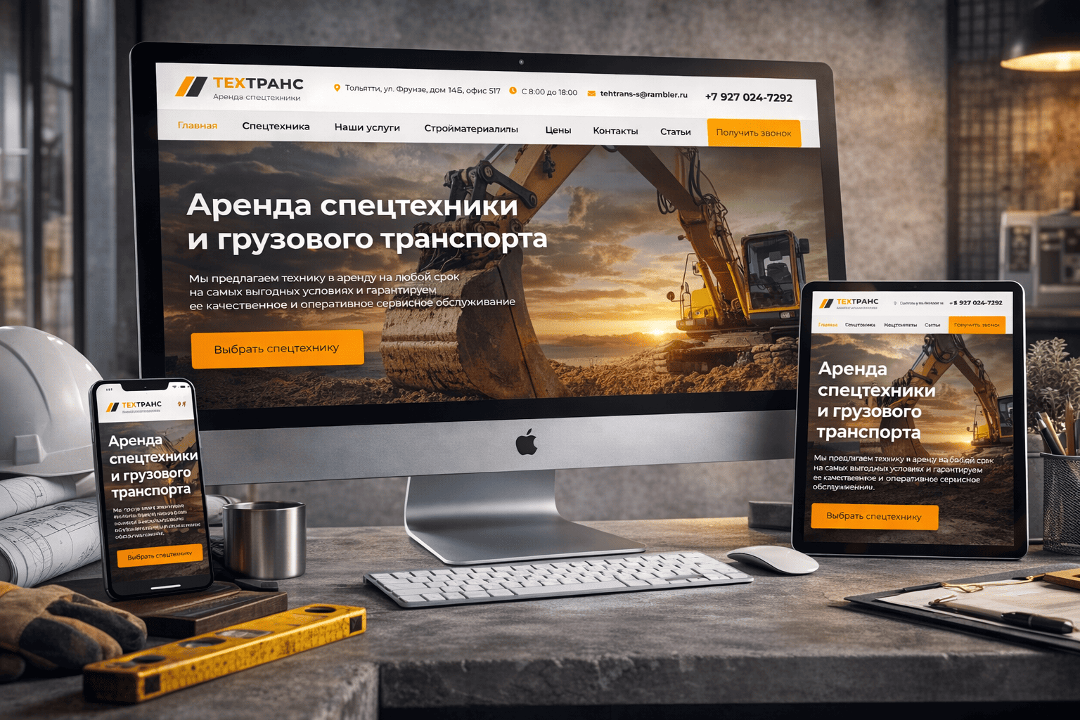 Лучшие сайты для сложных строительных услуг остаются понятными. Тяжелая машина на фоне закатного неба задает тон всему визуальному повествованию на сайте Техникатранс.рф. Цвета работают как металл и пыль: теплые, плотные, уверенные. Через понятную последовательность лучшие сайты для строительных компаний связывают клиентов с техникой и перевозками. Образ передает масштаб задач и рабочий характер бизнеса.