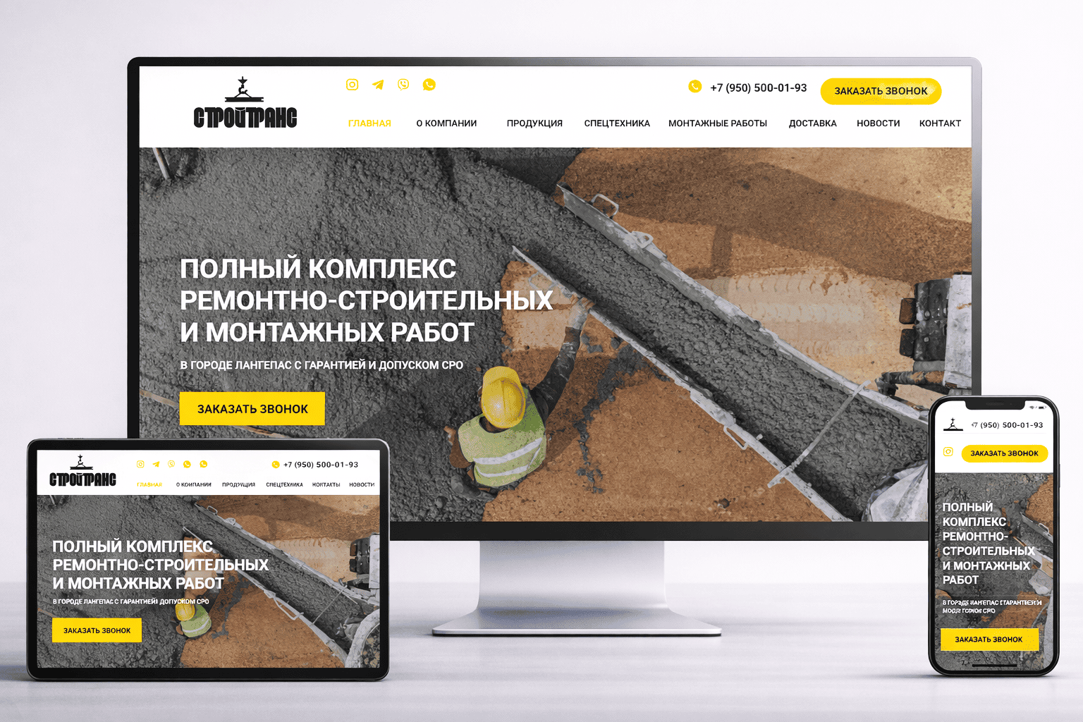 На адаптивных версиях для планшета или смартфона веб-дизайн сайта сохраняет выразительность и масштаб, продолжая работать как главный носитель смысла. В итоге сайт для строительной компании производит впечатление самого честного, самого наглядного и самого убедительного способа показать лучшее предприятие в Яндексе.