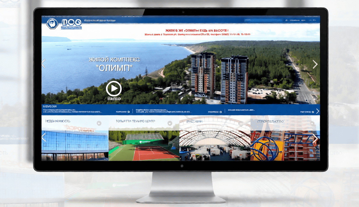 Сайт для строительной компании Тольяттистройзаказчик.рф выглядит как масштабная панорама реализованного амбициозного проекта: береговая линия, плотный зеленый массив, высотные здания, уверенно встроенные в ландшафт. Визуальная концепция создана в РОСТСАЙТ и сразу выделяется на фоне других в Яндексе; делает сайт заметным при первом просмотре — ощущается размах, продуманность и статус.